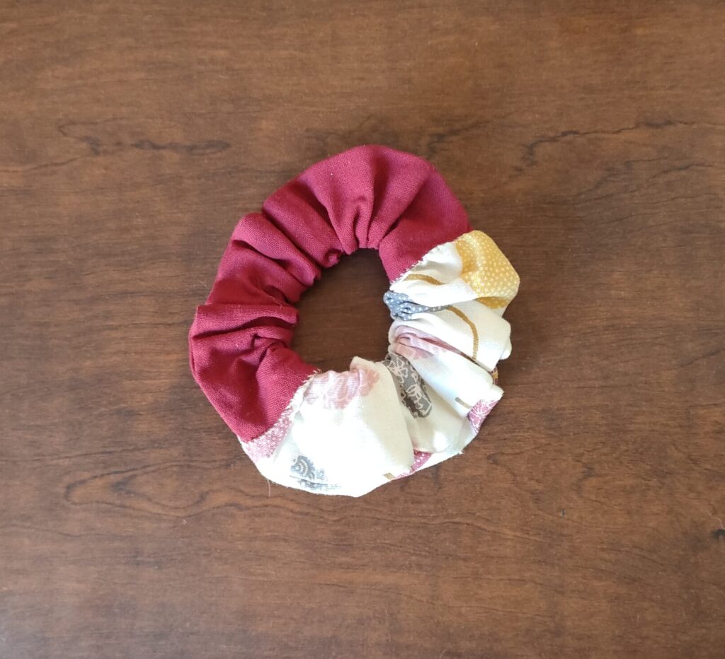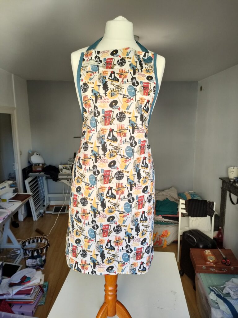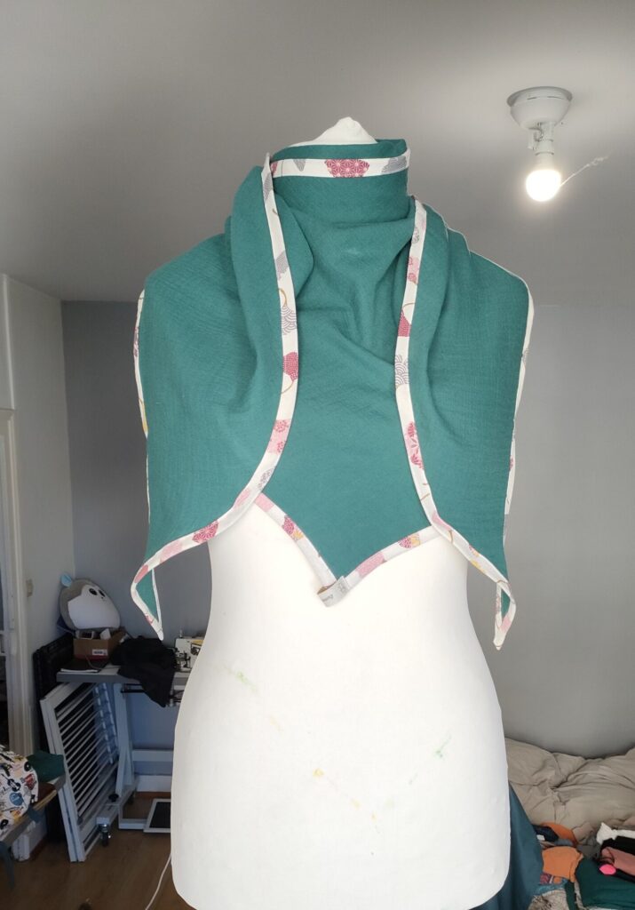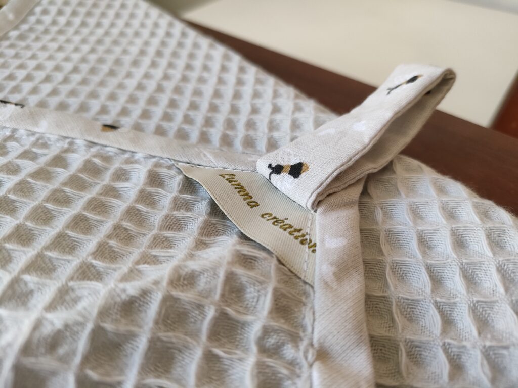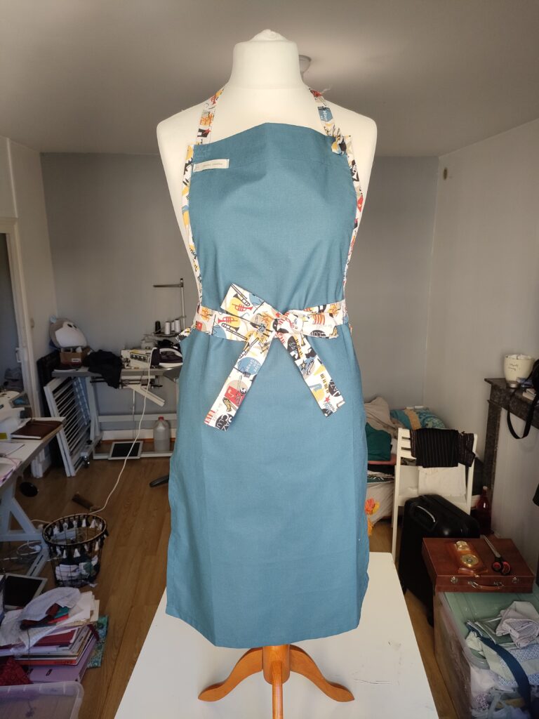 Nos accessoires (hors tablier, écharpe) sont créés à l’aide de chutes de tissu, afin d’utiliser les matières destinées à être jetées.